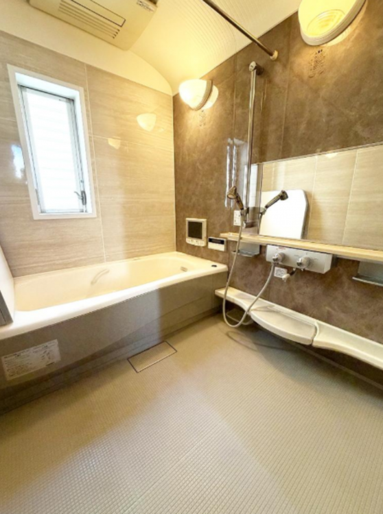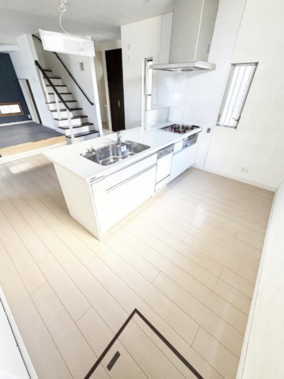 - 都市ガス,電気,上水道,下水道,ガスキッチン,システムキッチン,カウンターキッチン,食器洗浄乾燥機,給湯,追焚機能,トイレ2箇所,バス・トイレ別,シャワー,温水洗浄便座,洗面所,洗面台,シャンプードレッサー,室内洗濯機置場,浴室乾燥機,床暖房,フローリング,収納スペース,ウォークインクローゼット,駐車場2台分,モニター付きインターホン