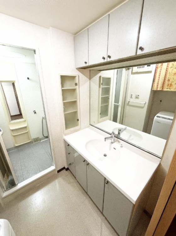 - 都市ガス,上水道,下水道,ガスキッチン,システムキッチン,カウンターキッチン,給湯,追焚機能,バス・トイレ別,シャワー,温水洗浄便座,洗面所,洗面台,室内洗濯機置場,フローリング,出窓,収納スペース,エレベータ,モニター付きインターホン,管理人